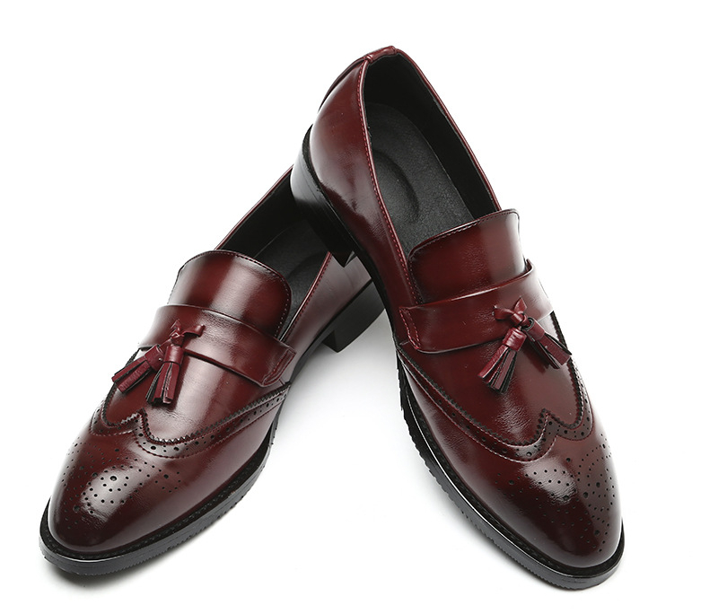 The men’s leather shoes, featuring a Casual fashion Brock tassel design. These shoes are suitable for business and are both wear-resistant and breathable, ensuring that your feet stay comfortable all day long. The rubber soles provide added durability, while the tassel design adds a touch of sophistication. With these new shoes, you’ll be ready to step out in style